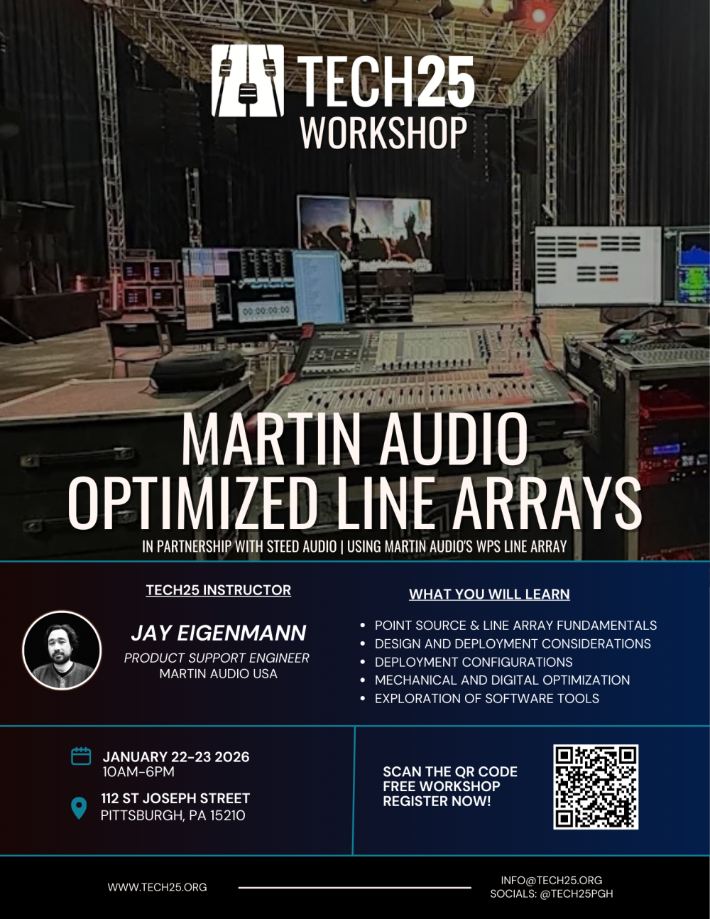 Join us to explore the system fundamentals and deployment of optimized line arrays, in partnership with Steed Audio, and using Martin Audio's WPS line array.