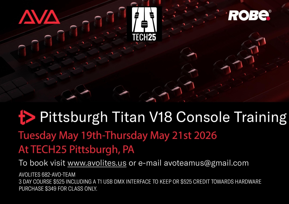 A comprehensive training on Avolites consoles covering from patching to timecode and everything in between. Using Avolites D7-215 consoles and full Capture visualization, students are guided through building a show from scratch to using all of the effects engines and features in the Avolites Titan software.